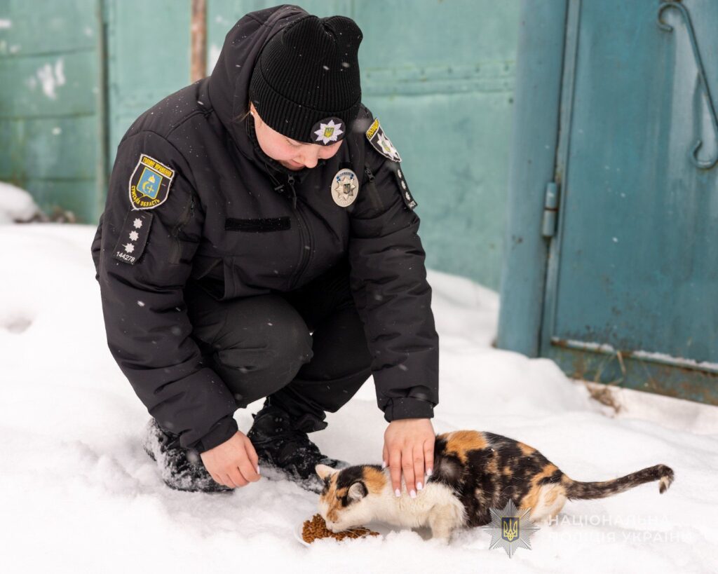 Зима це загроза для тварин, які залишаються на вулиці без укриття та регулярного доступу до їжі. У таких умовах допомога стає питанням виживання. Офіцери Служби освітньої безпеки Шосткинського районного управління поліції придбали корм та виїхали в місця перебування безпритульних котів і собак, аби їх нагодувати.