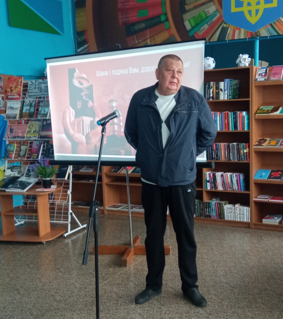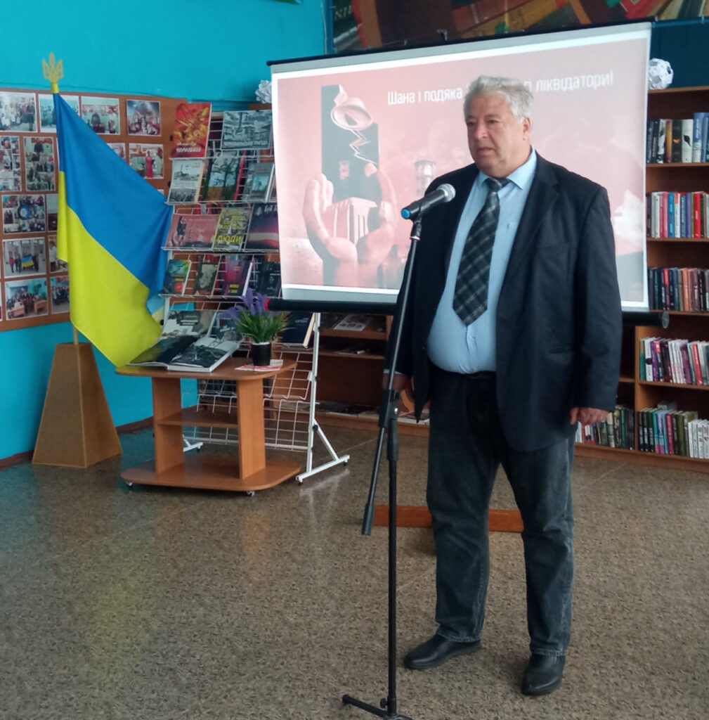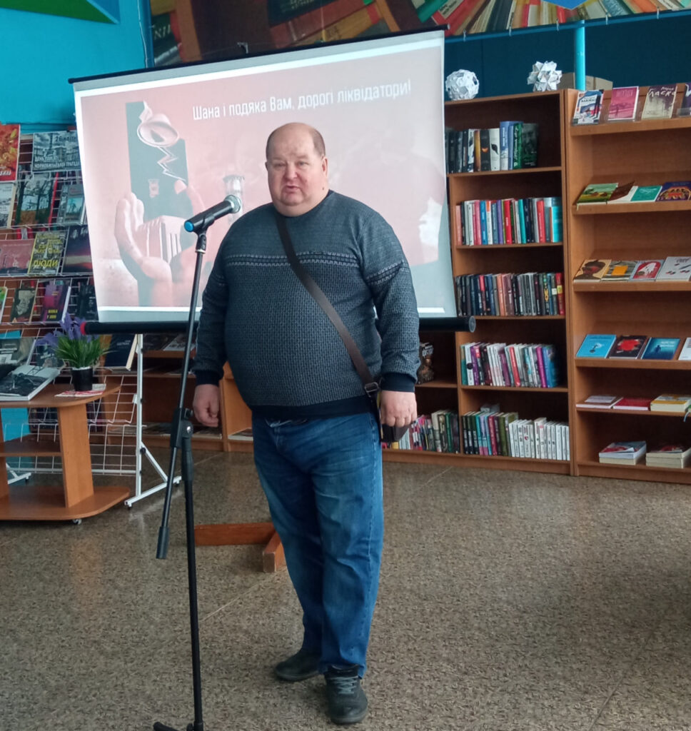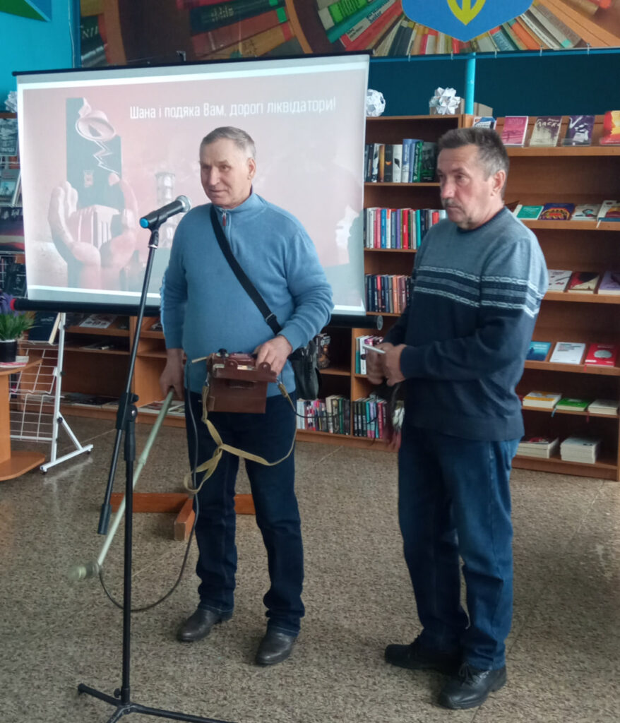 Цей захід зібрав тих, для кого Чорнобиль не сторінка підручника, а особистий біль і пережитий досвід. До бібліотеки завітали члени громадської організації «Інвалідів та учасників ліквідації наслідків аварії на Чорнобильській АЕС. Союз чорнобильців України». Разом із головою організації Василем Ожоганичем, ліквідатори Олексій Семененко, Федір Антипенко, Михайло Ярошенко та Леонід Рибкін, поділилися спогадами про ті дні, коли вони одними з перших стали на боротьбу з невидимим ворогом.