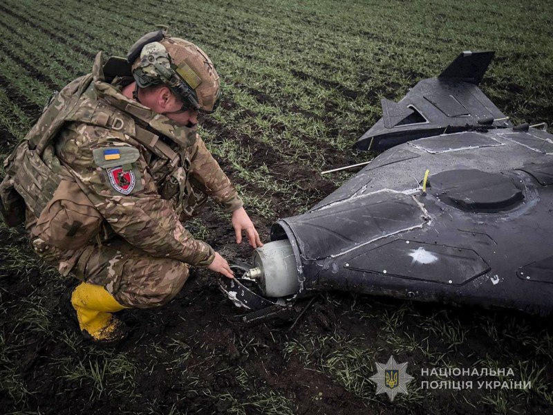 Прибувши на поле, де впав БпЛА, вибухотехніки поліції оглянули уламки, провели знешкодження його бойової частини фугасно-уламкової дії та вивезли її для знищення шляхом контрольованого підриву.