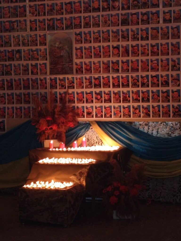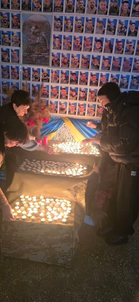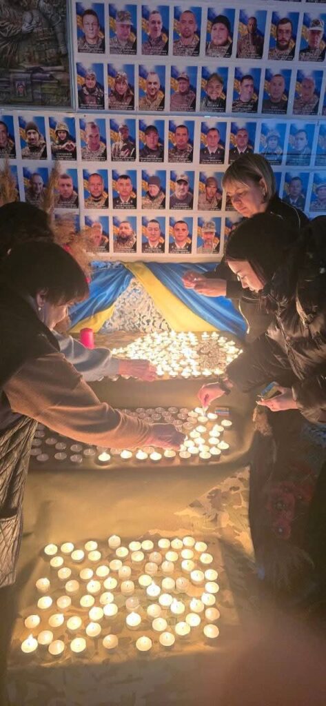 Стіна з портретами загиблих Захисників стала мовчазним свідком цієї події. Поруч — синьо-жовті полотнища, квіти та мерехтіння вогників. У кожній свічці чиєсь життя, мрія, любов, що вже ніколи не повернуться, але назавжди залишаться в серцях рідних, друзів і всієї громади.