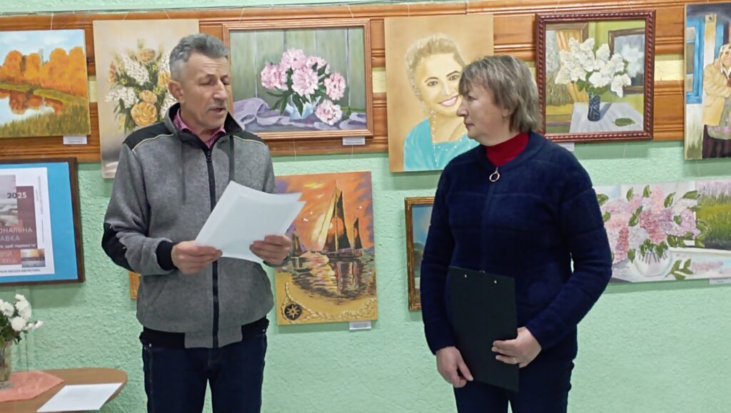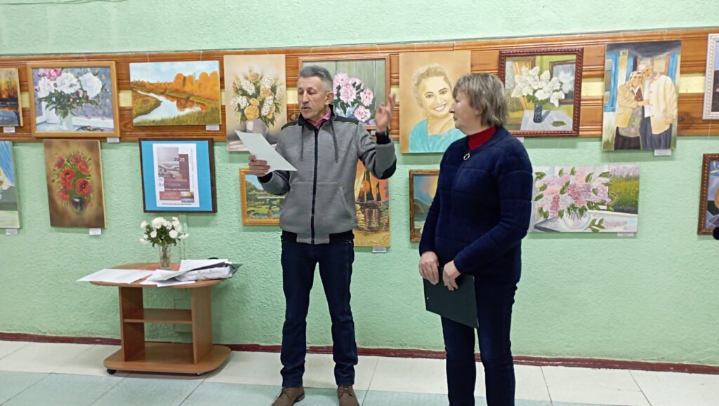 Директорка Шосткинська центральна міська бібліотека Світлана Портянко привітала митця з відкриттям виставки, побажала натхнення й нових творчих здобутків, а також вручила автору пам’ятне свідоцтво.