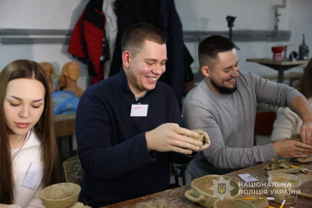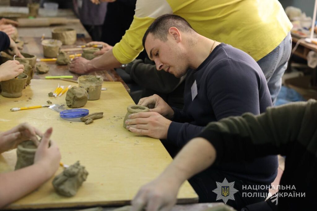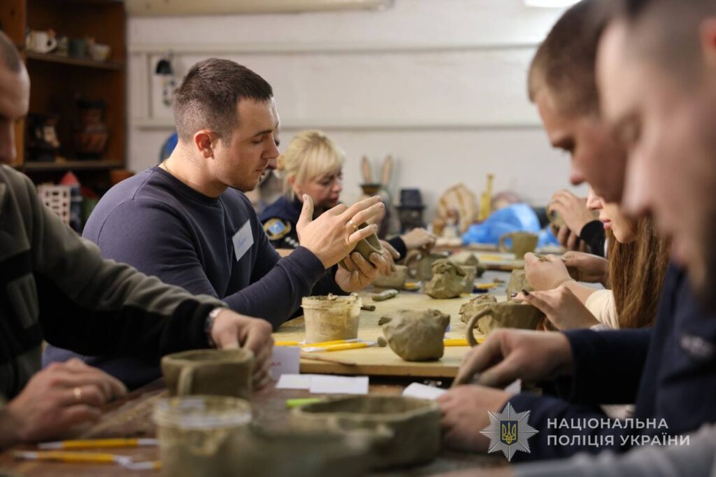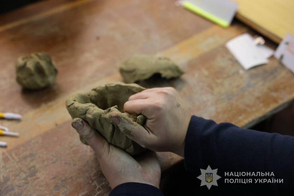 Глина, завдяки своїй природній текстурі, допомагає висловити те, що важко сказати словами. Робота з нею знижує тривогу та сприяє психологічному розвантаженню, що особливо важливо для поліцейських, які пережили стресові події.