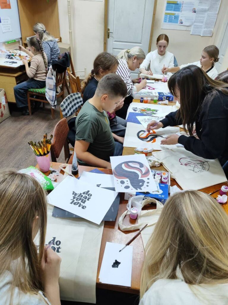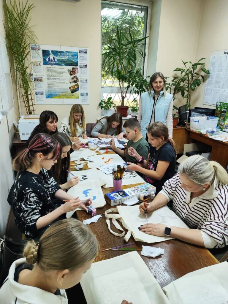 Малювання на екошоперах текстильними акриловими фарбами створило атмосферу невимушеного спілкування та щирих емоцій.