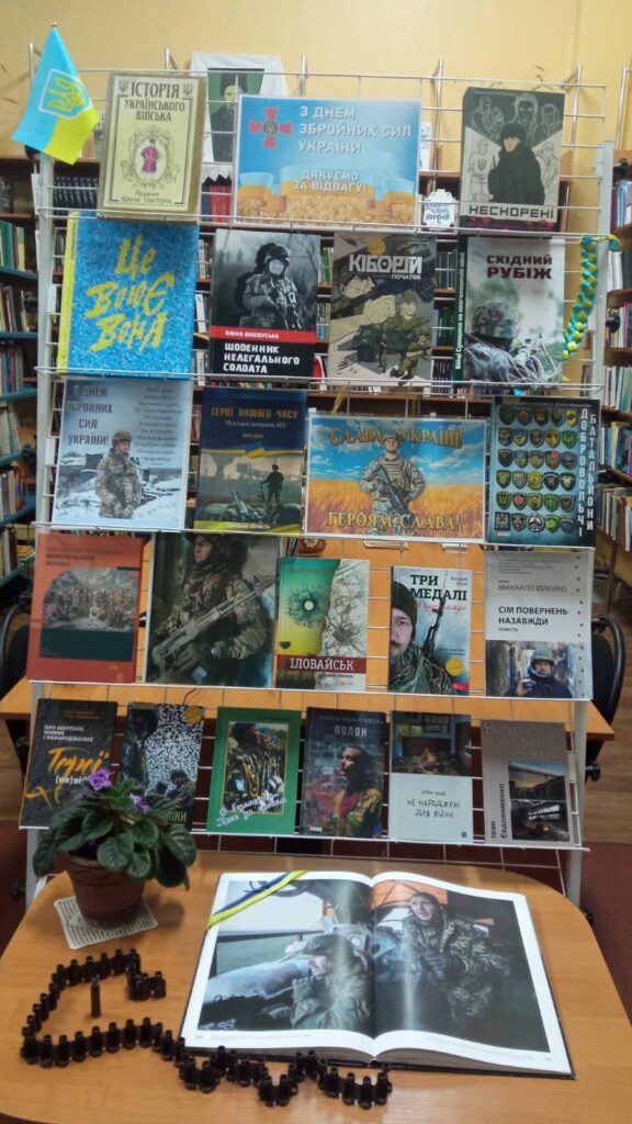 Із нагоди Дня ЗСУ Шосткинська центральна міська бібліотека презентувала книжкову виставку «Лицарі сьогодення». До експозиції увійшли видання, що розповідають про формування та розвиток українського війська, про сучасну російсько-українську війну, а також про героїзм і мужність наших захисників.
