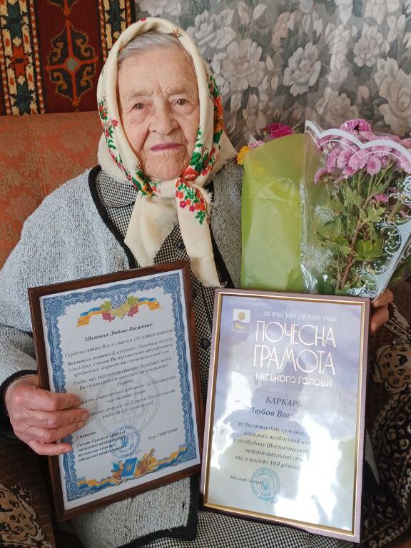 4 жовтня мешканці нашого міста Любові Василівні Баркарь виповнилося 100 років. Зі словами щирих побажань міцного здоров’я, злагоди та миру ювілярку привітали шосткинський міський голова Микола Нога, очільниця управління праці та соціального захисту населення Антоніна Наймитенко та інші представники Шосткинської міської ради.