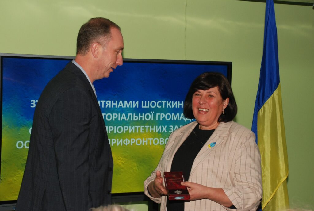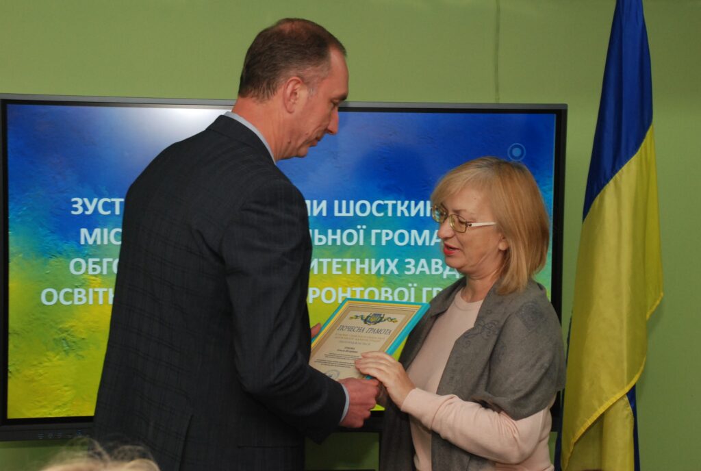 Вчительці географії та економіки, заступниці директора Шосткинської школи-ліцею Світлані Суптельній вручено нагрудний знак від Президента «Заслужений вчитель України». Вчитель трудового навчання ЗОШ № 5 Михайло Кибенко нагороджений відзнакою Міністерства освіти та науки України «Василь Сухомлинський».