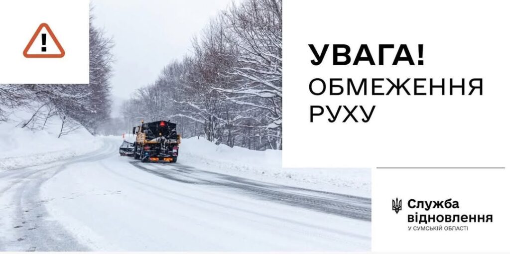 У зв’язку зі значним погіршенням погодних умов – інтенсивним снігом, хуртовиною та ожеледицею – на автомобільних дорогах державного значення у Сумській області запроваджують тимчасове обмеження руху вантажних і великогабаритних транспортних засобів.