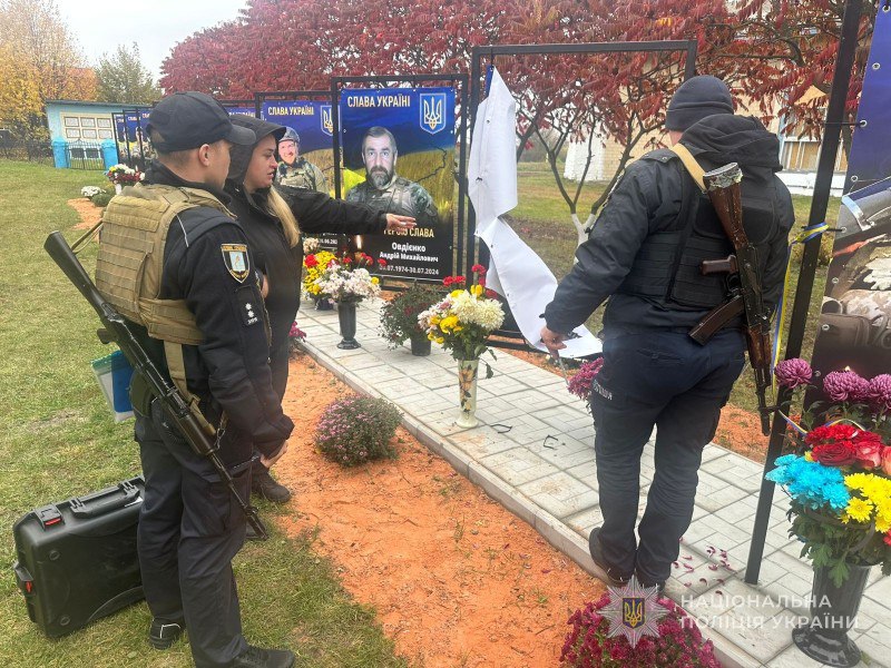 Сьогодні до поліції звернулася жінка та повідомила, що виявила пошкодження пам’ятного об’єкту із зображенням загиблого Героя. На місце події виїхала слідчо-оперативна группа відділення поліції № 4 (м. Суми) Сумського районного управління поліції.