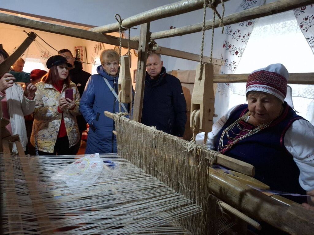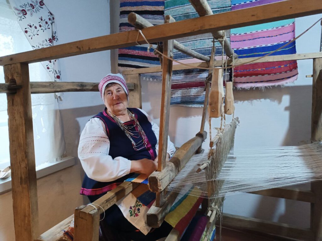 Не менше тут пишаються справжнім ткацьким станком, на якому вправно працює Ганна Науменко, показуючи, як плетуться килимки. Жінка говорить, що працювати на верстаті її навчила свекруха і вона вже півстоліття займається ткацтвом. Цю майстерність пані Ганна передала своїй дочці, Людмилі, яка крім ткацтва опанувала ще коврову вишивку.