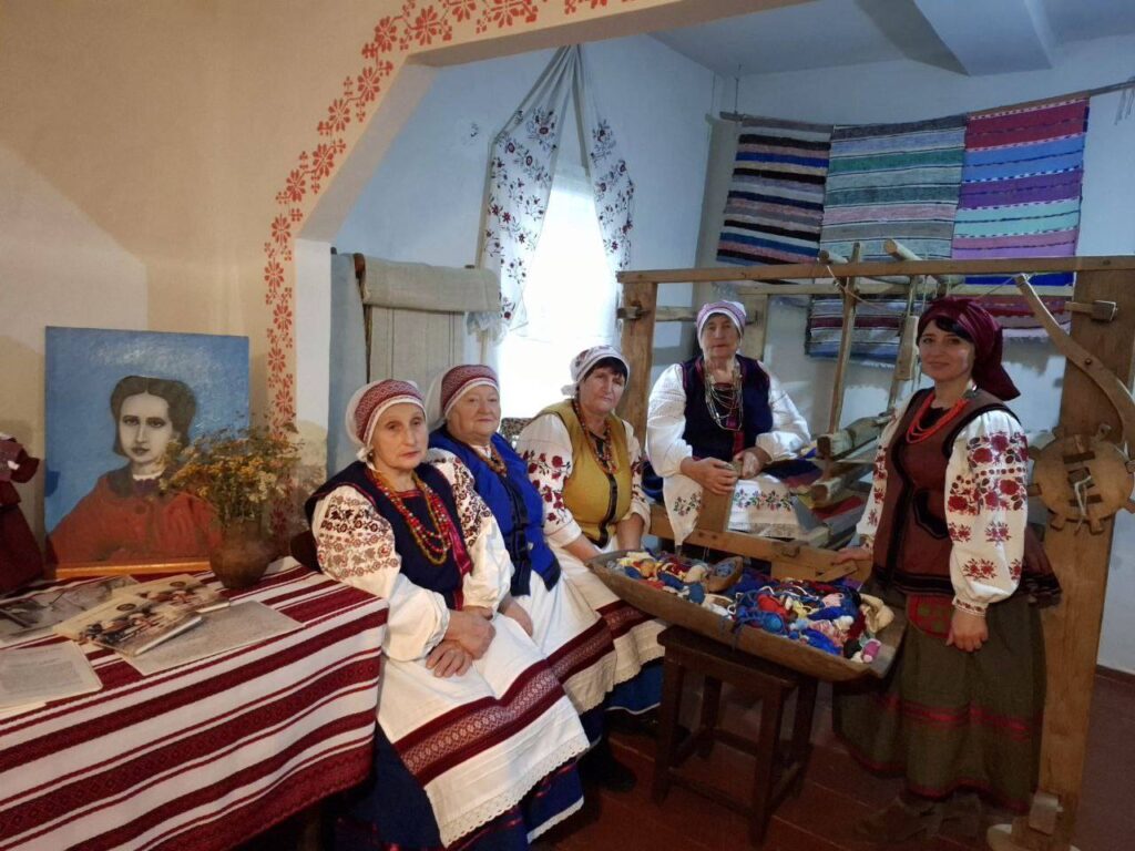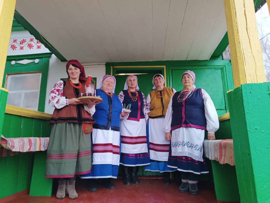 Зустрів нас на порозі музею місцевий автентичний гурт “Панянки з Землянки” на чолі з художнім керівником ансамблю та одночасно керівницею історико-етнографічного простору Оксаною Анісімовою. Жіночки вбрані у національний одяг. Сорочки вишиті традиційним місцевим візерунком.