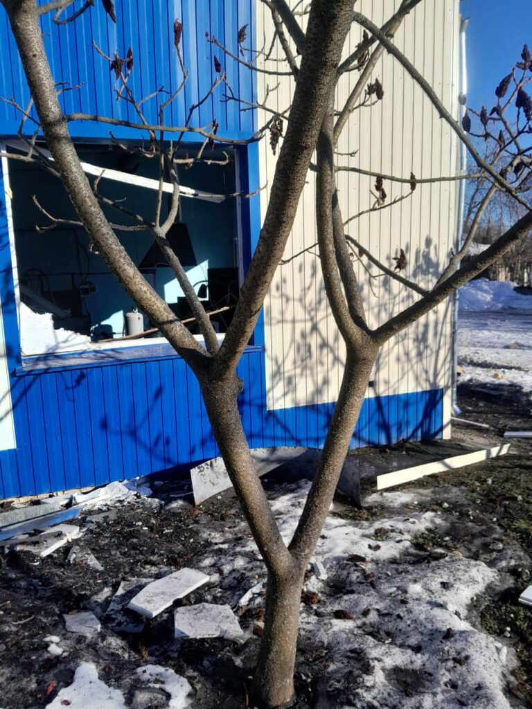 Руйнувань зазнало одне із місцевих підприємств. Виникло загоряння. Через загрози повторних атак, рятувальники були змушені тимчасово призупиняти роботи та слідувати в безпечне місце. Пожежу вдалося ліквідувати, також фахівці ДСНС обстежили територію.
