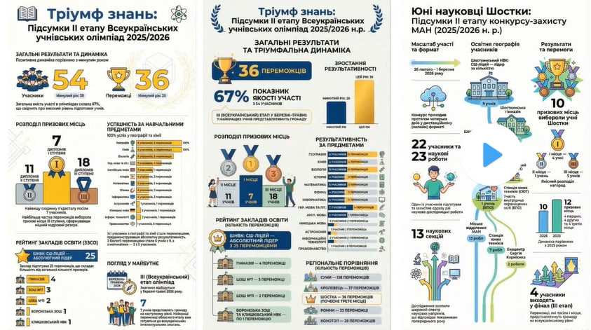 За її словами, за підсумками ІІ (обласного) етапу Всеукраїнських учнівських олімпіад громада має 54 учасники, з яких 36 стали переможцями. Для порівняння: торік участь брали 38 школярів, а переможців було 20. Така динаміка свідчить про суттєве зростання результатів.
