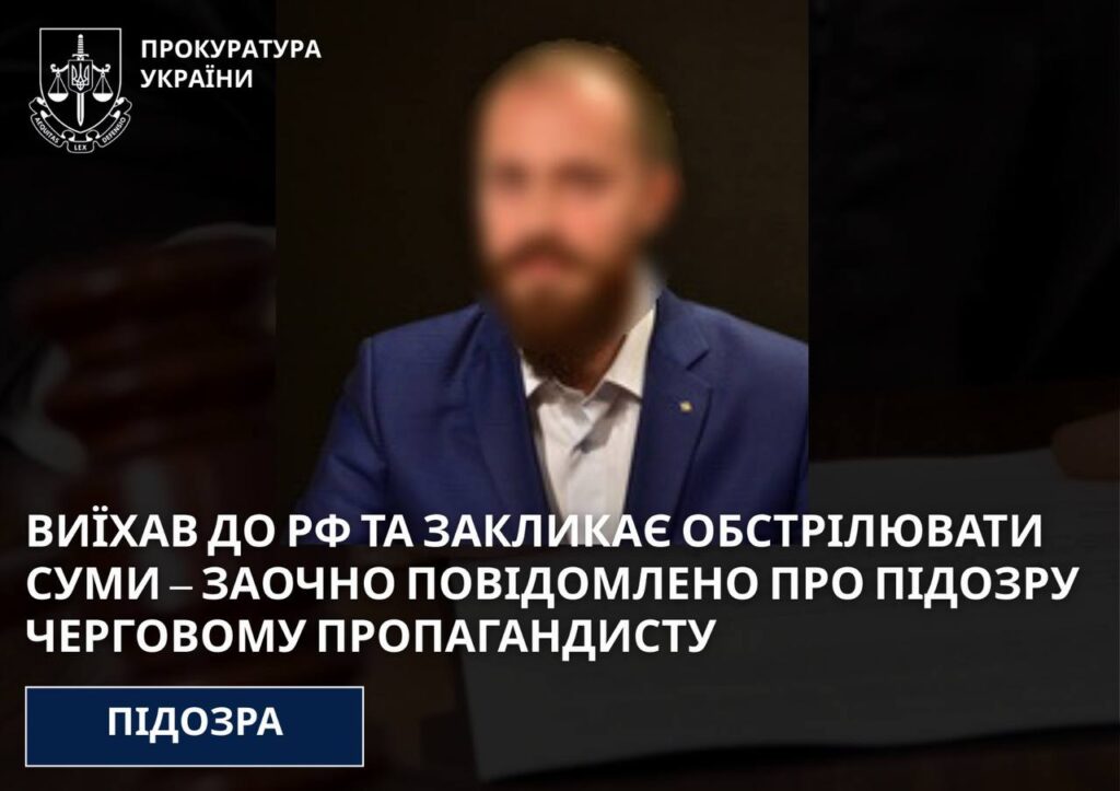 За даними слідства, підозрюваний до 2007 року проживав у м. Суми та працював у медійній сфері. Через проросійські переконання він виїхав до рф, де розпочав антиукраїнську пропагандистську діяльність.