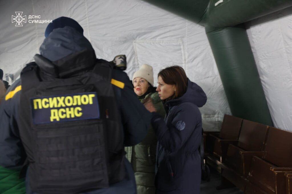Від самого ранку співробітники ДСНС оперативно розгорнули мобільний пункт незламності, де місцеві жителі можуть зігрітися та зарядити гаджети. У пункті працює психолог ДСНС, який надає підтримку громадянам, що пережили стрес.