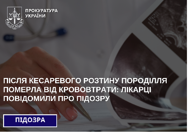 За процесуального керівництва ювенальних прокурорів Окружної прокуратури міста Суми 25 лютого 2026 року повідомлено про підозру лікарці акушер-гінекологу місцевого перинатального центру Пресвятої Діви Марії.