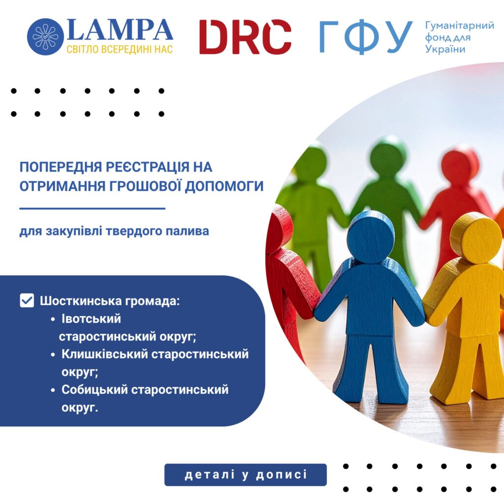 У межах домовленостей уже стартувала попередня реєстрація на отримання грошової допомоги для закупівлі твердого палива. Підтримку можуть отримати мешканці таких старостинських округів Шосткинської громади:
