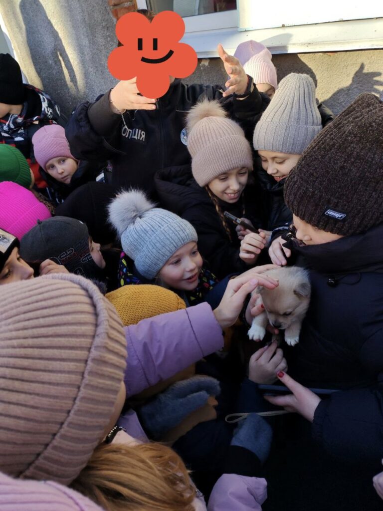 Захід організували просто біля укриттів — у форматі відкритого спілкування, щоб діти могли не лише почути про волонтерську діяльність, а й поспілкуватися з пухнастим улюбленцем, якого пані Тетяна привезла із собою. Хвостатий гість одразу знайшов друзів серед школярів, подарувавши багато усмішок та теплих емоцій.