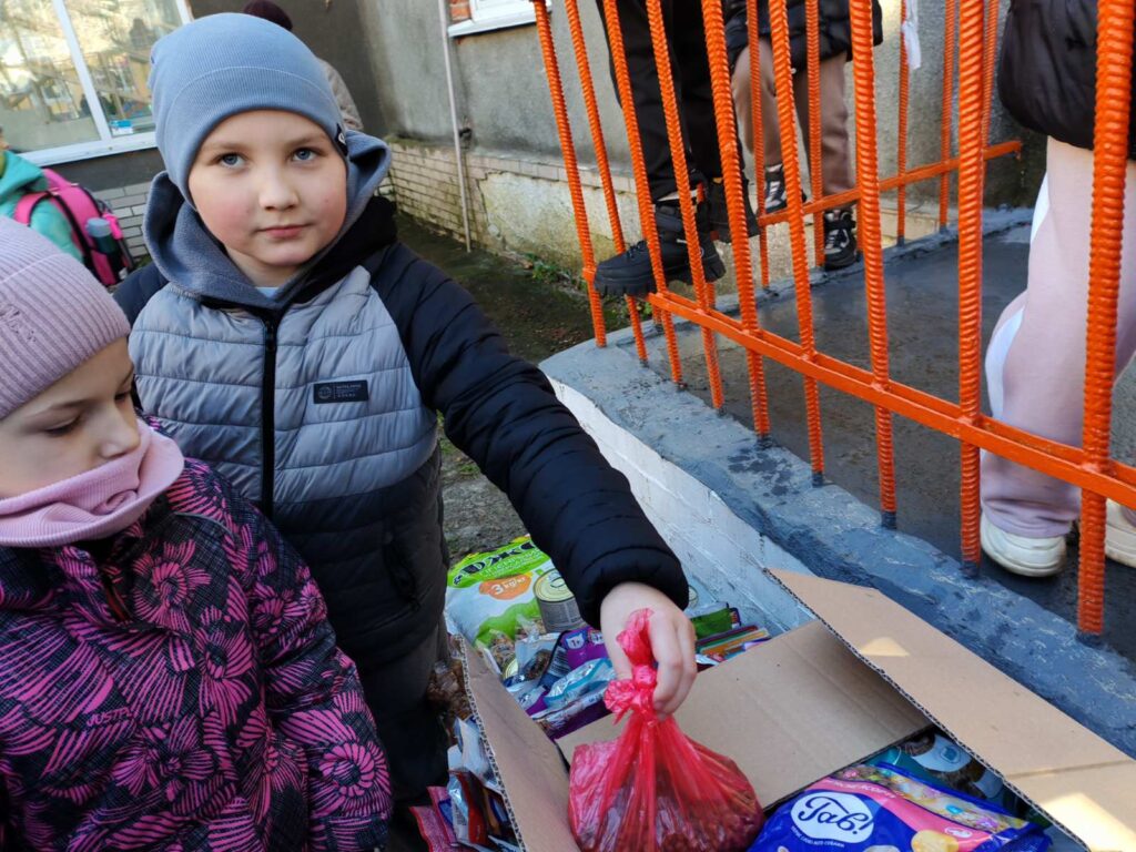 В рамках всеукраїнської ініціативи “Уроки Турботи” педагоги, учні та їхні родини заздалегідь зібрали смаколики для тварин, і сьогодні школа урочисто передала волонтерам зібрану допомогу.