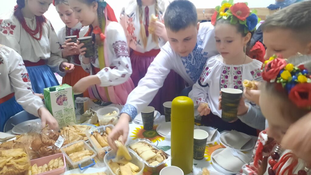 Щирі оплески глядачів,посмішки,гарний настрій, віра дітей в теплу Весну та Мирне сонячне небо над Україною. Після виступу на дітей чекало щедре “масляне” пригощання від батьків -традиційні страви свята Масляної, – розповідає керівниця ансамблю Тетяна Стегайло.