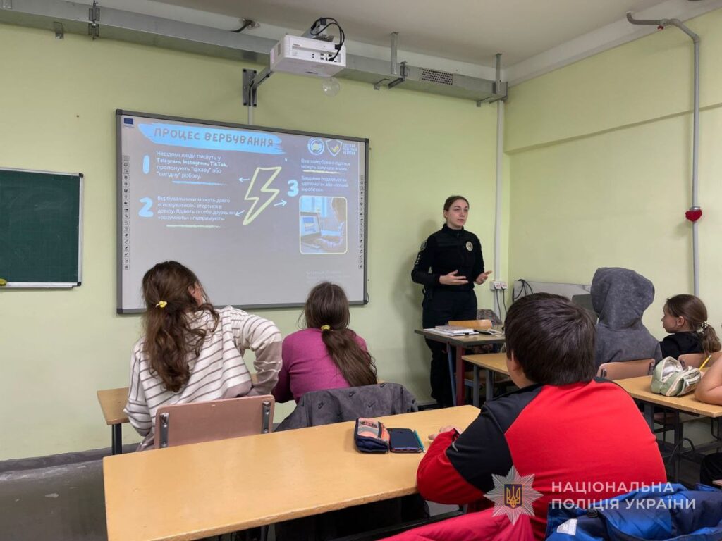 Учням розповіли, як зловмисники використовують соціальні мережі, щоб втягнути молодь у протиправну діяльність, прикриваючись «легким заробітком», «анонімністю» або «ігровими завданнями». Правоохоронниця пояснила механізми вербування, методи психологічного впливу та ризики, які приховують такі контакти.