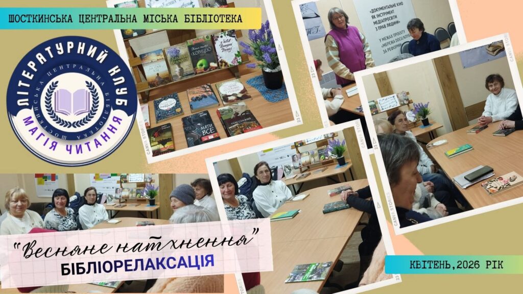 У затишній вітальні Шосткинської центральної міської бібліотеки учасниці Літературного клубу «Магія читання» зібралися на квітневу зустріч. Цього разу традиційне обговорення прочитаного допомогло зосередитися на тому, що зараз важливо для кожного – ментальному здоров’ї та пошуку психологічної рівноваги.
