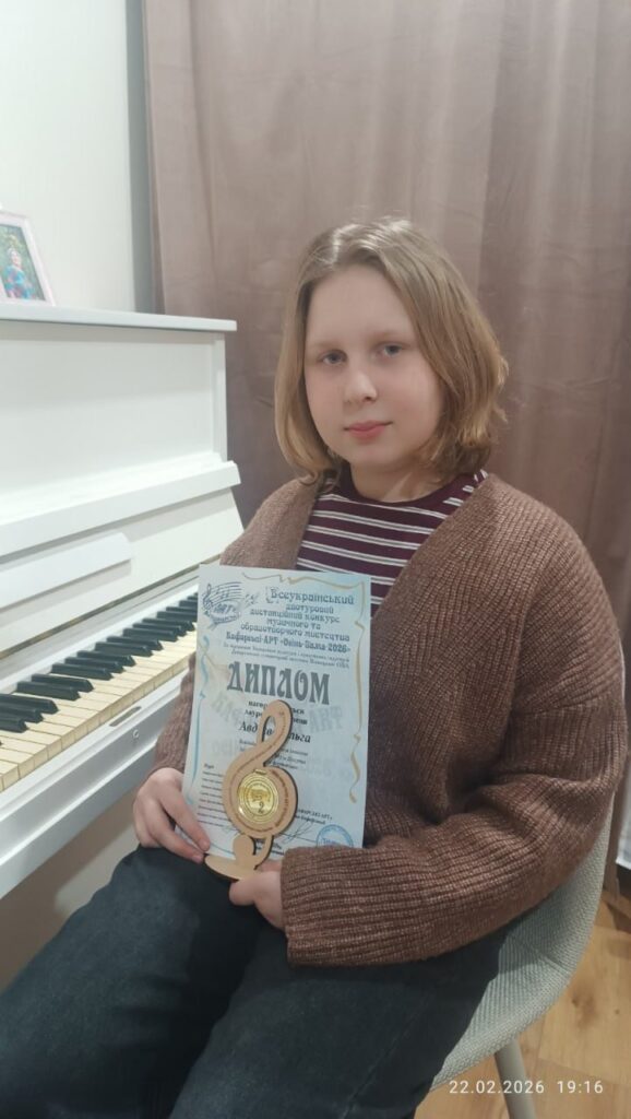 У номінації «Фортепіано» ІІ місце отримала учениця Шосткинської музичної школи №2 Ольга Авдєєва.