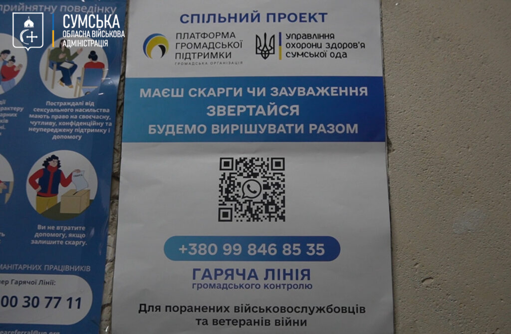 У лікарнях області розмістили інформаційні плакати з контактами для військових і ветеранів, які потребують медичної, юридичної або організаційної допомоги. Звернення приймає кол-центр ГО «Платформа громадської підтримки».